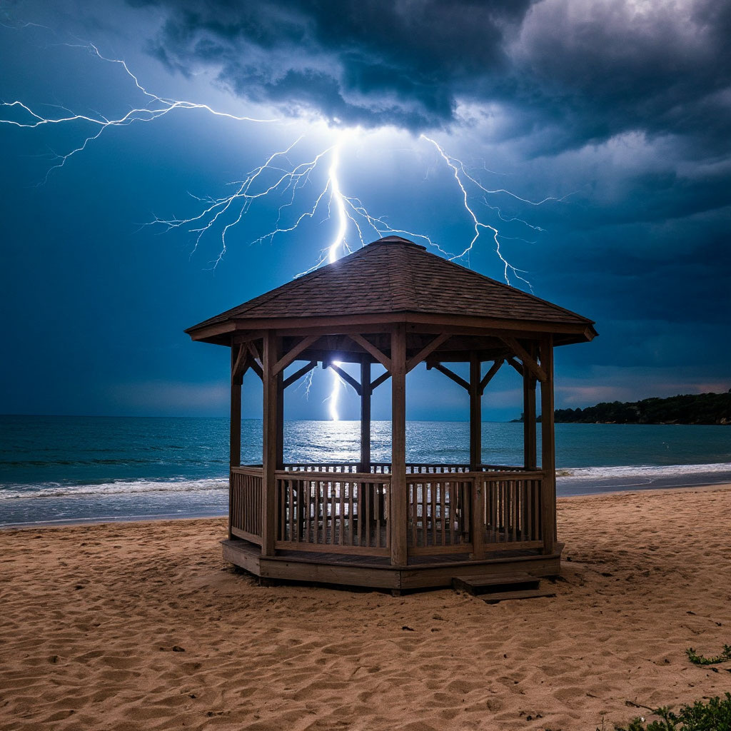 «Чудом выжила»: молния ударила в беседку с людьми на пляже в Подмосковье