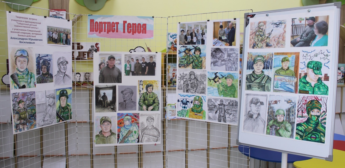 В городской библиотеке оформлена выставка «Портрет Героя», посвященная участнику, ветерану боевых действий Специальной военной операции Александру Юрьевичу Васильеву. Портреты библиотеке предоставила «Тайшетская детская художественная школа». Ждём вас ежедневно с 9-00 до 18-00, (выходной – суббота) по адресу: Транспортная, 97.