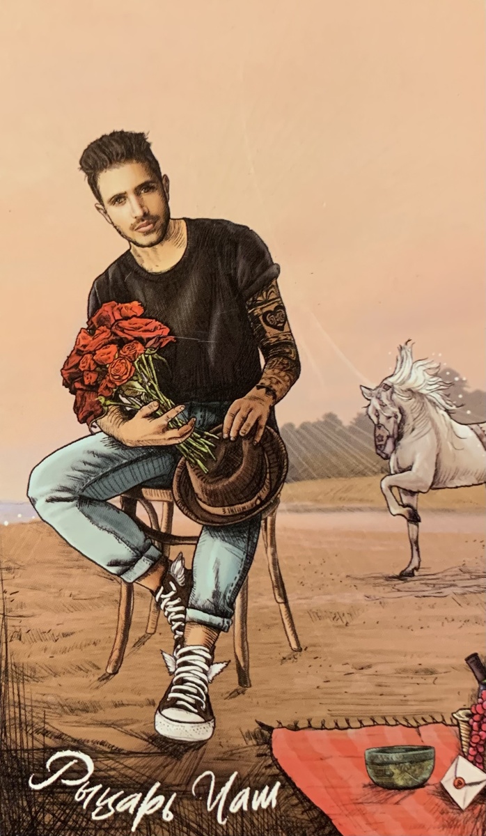 Эта карта - символ романтики, она воплощает в себе изящество медленного танца. Наслаждайтесь флиртом, настройтесь на связь. Рыцарь Чаш полагается на интуицию и хорошо понимает свои эмоции.