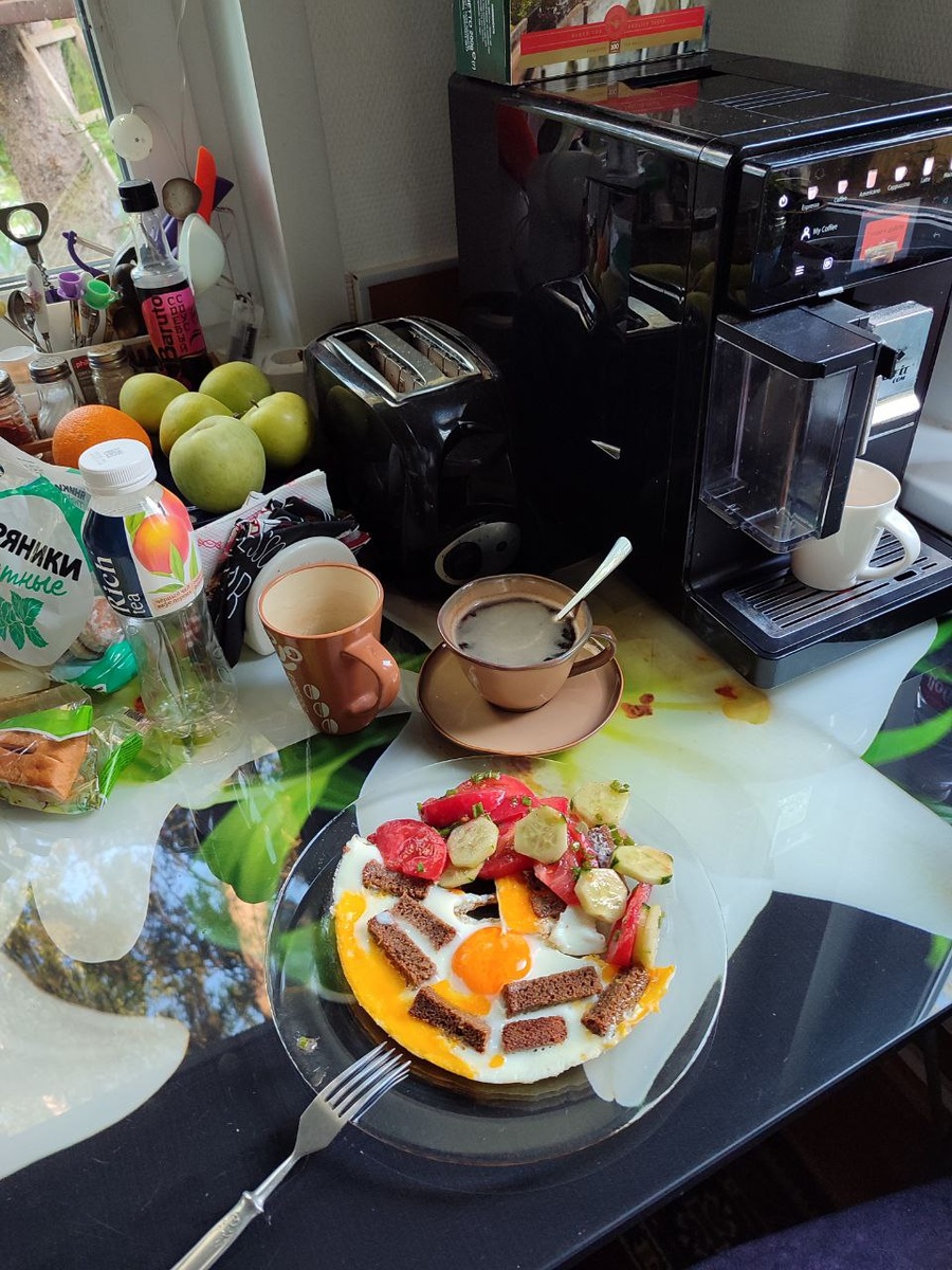 Это не буквы, а следы ночного ветра, проскользнувшего между клавишами старой поюзаной клавиатуры. Каждая строка — как таинственное послание из параллельного мира, где слова рождаются не из смысла, а из шепота теней. Возможно, это шифр забытого языка, которым когда-то говорили звёзды, или просто игра пальцев, уставших от правильности. Но в этом хаосе символов есть своя музыка — резкая, как скрип несмазанных шестерён, и в то же время гипнотическая, как мерцание экрана в пустой комнате. Кухня не пахнет чабрецом и старыми деревянными шкафами. Просто тут нет такого винтажа. За окном шепчутся берёзы и сосны. Чайник молчит на пару с кофе-машиной, не мешая неспешным мыслям. В воздухе висит что-то неуловимое — то ли воспоминание, то ли ожидание. Часто не ждёшь чего-то специального, но приятный ужин, праздничный без повода - это очень душевно и тепло.. Я вообще-то не понимаю людей, которые постоянно фотографируют то, что едят.. Но для себя я решил сделать исключительный случай, потому что это