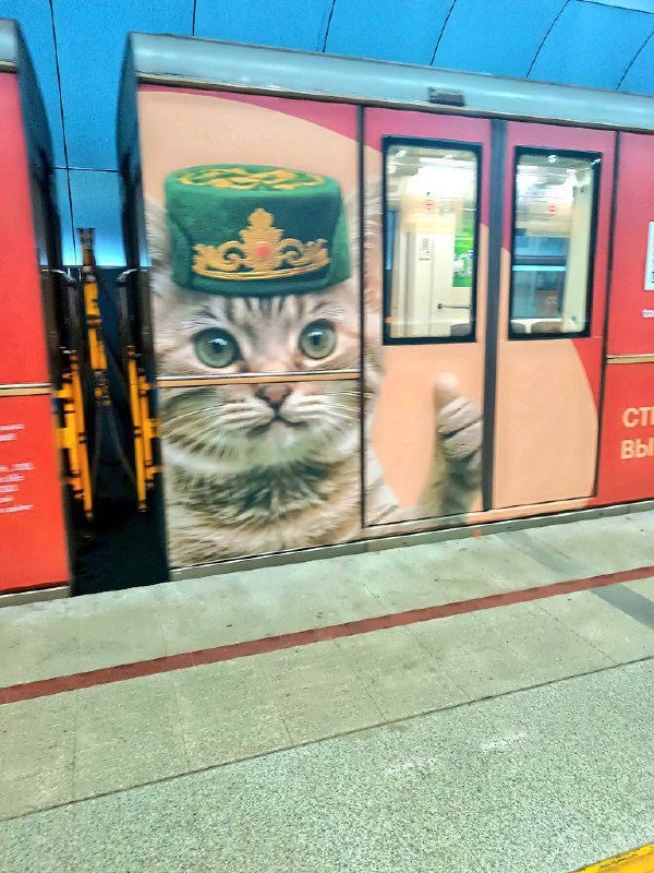 Милота подъехала: в Казани запустили поезд с котом-татарином — пушистый теперь катается по единственной линии метро.