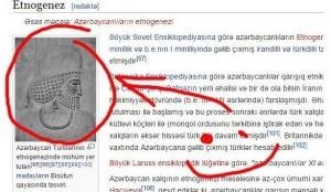 Азербайджанский вариант всемирной виртуальной энциклопедии Википедия для закавказских турок - непаханное поле для всяческого рода фальсификаций и манипуляций. Здесь они действуют открыто, нагло и практически безнаказанно. Так, в статье "Азербайджанцы" в закавтурецком варианте Википедии в разделе "Этногенез" красуется фрагмент Бехистунской надписи.