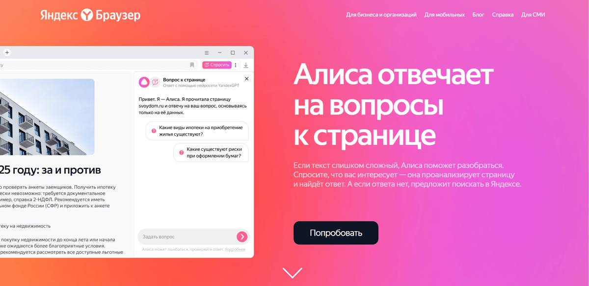 Для начала нужно скачать и установить свежий Яндекс Браузер с Алисой: Покажу на примере произвольного видео с Youtube на английском языке. В окошке с видео появится яркая панелька. Нажмите кнопку "Перевести и озвучить". Откроется список выбора голоса. Можно обычный выбрать. Вам этого хватит: И нужно некоторое время подождать, пока сервис переведет всё видео: Ну а когда будет всё готово, на заднем плане будет тихо звучать оригинал и громко - перевод. И еще тут же можно запросить пересказ всего видео на русском языке. Справа откроется панелька с кратким изложением содержания: Автор: Элеонора Куделя