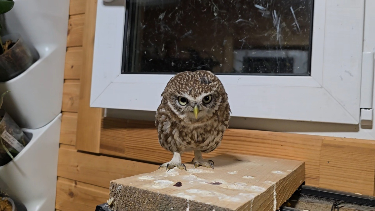 Сова сплюшка Калинка продолжает своё лечение. Очень тяжело даётся снесение яиц