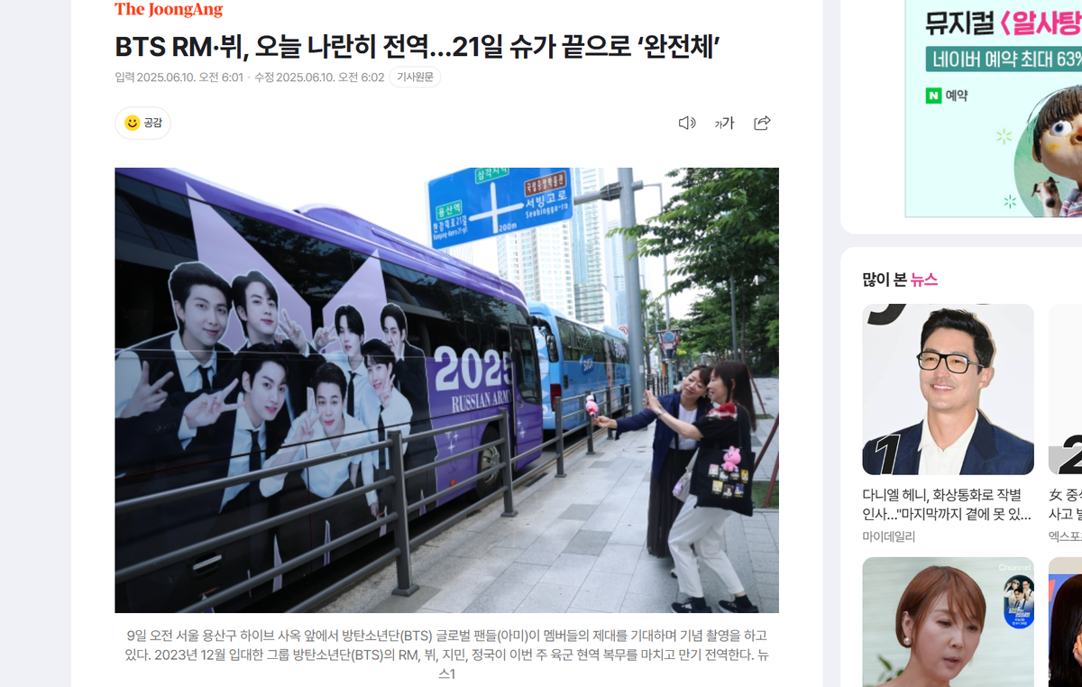 У меня практически ночной караул, час ночи на дворе и так приятно видеть как одна за одной в корейских новостных источниках появляются статьи о том, что Намджун и Тэхен наконец-то закончили служить! (Если вы случайно заскочили на канал, то знайте, что это участники корейской группы BTS, по которой фанатеет полмира) И не менее радостно видеть, что поздравительный автобус от русской части фандома, который стоит в Сеуле около здания HYBE, не остался незамеченным и даже попал на обложку одной из новостей! По данным из этих источников, Намджун и Тэхен сегодня утром завершили процедуру увольнения в запас в своих соответствующих подразделениях и, как ожидается, покинут воинские части через контрольно-пропускные пункты. В честь увольнения в запас членов группы компания HYBE накануне разместила на внешней стене своего офиса в Сеуле огромную надпись «WE ARE BACK» («МЫ ВЕРНУЛИСЬ»). Эта надпись будет висеть до 29 июня в честь годовщины дебюта BTS, которая отмечается 13 июня. И как удивительно в не
