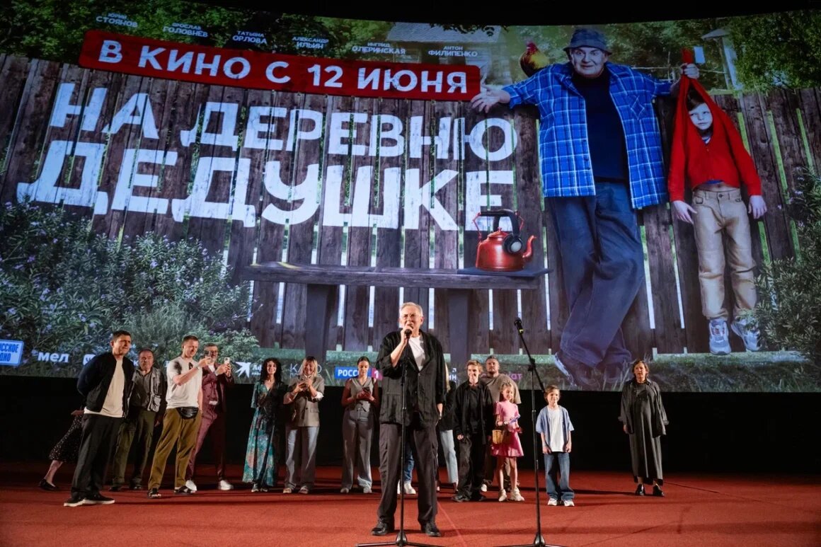 Главный дедушка страны — Юрий Стоянов — представил зрителям народную комедию для всей семьи! «На деревню дедушке» — в широком прокате с 12 июня. 8 июня в кинотеатре «Октябрь» прошла светская премьера семейной комедии «На деревню дедушке». Первым столичным зрителям картину представила творческая группа проекта: актеры Юрий Стоянов, Татьяна Орлова, Александр Ильин Старший, Ярослав Головнёв, Мирон Лебедев, Алиса Руденко, продюсеры Георгий Малков, Ясмина Бен Аммар, Андрей Липов, сценарист Александр Бережной. Первым столичным зрителям картину представила творческая группа проекта: актеры Юрий Стоянов, Татьяна Орлова, Александр Ильин Старший, Ярослав Головнёв, Мирон Лебедев, Алиса Руденко продюсеры Георгий Малков, Ясмина Бен Аммар, Андрей Липов сценарист Александр Бережной. В числе звёздных гостей премьеру посетили: Марк Малик Мурашкин, Александр Мартынов, Тимофей Зайцев. Виктория Богатырева, Анна Ещенко, Анатолий Чугунов, Анастасия Чернобровина, Илья Гуров и другие Особым моментом премьеры