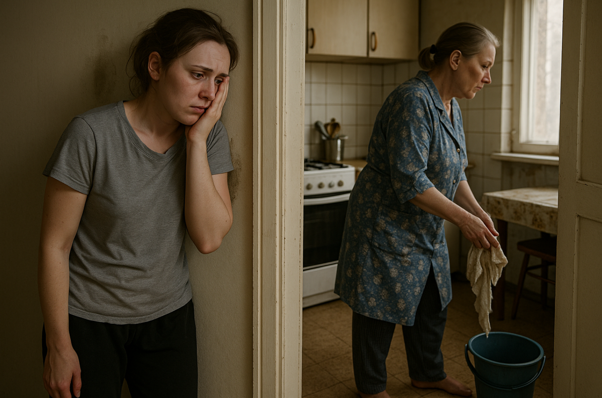 Я стояла босиком в проходе между кухней и коридором, прижимая к лицу холодную ладонь. Щека пульсировала. Мокрое пятно расползалось на обоях - туда, куда я ударилась затылком, когда он толкнул.
