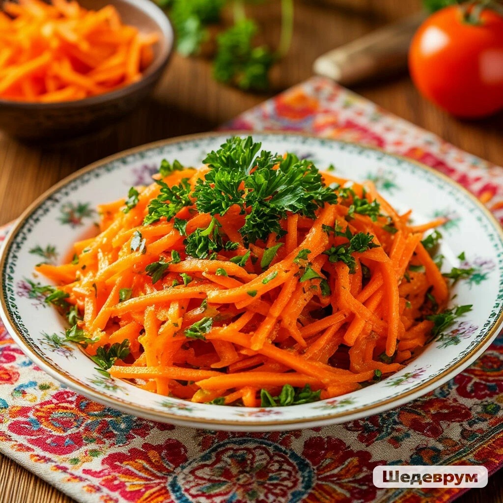 Приветствую вас, дорогие читатели Яндекс.Дзен! Сегодня я поделюсь с вами не просто рецептом, а настоящим кулинарным сокровищем – рецептом моркови по-корейски, приготовленной по-узбекски, по нашим семейным традициям. Это не та морковь, которую вы привыкли видеть на прилавках супермаркетов, – здесь нет ни излишней сладости, ни ненужных добавок. Только яркий, острый, незабываемый вкус, передающийся из поколения в поколение!