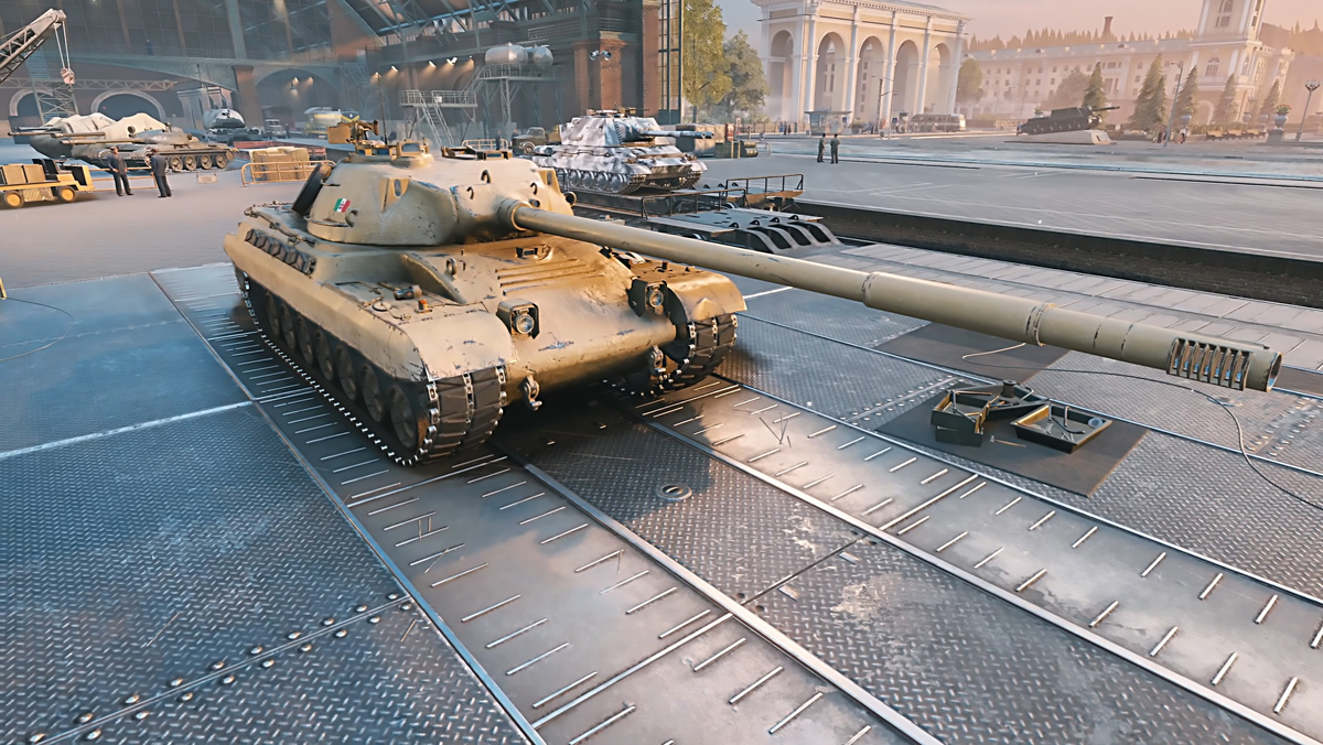 Последний скрытый танк обновления 1.35 и самый неинтересный из всех. Ну то есть, буквально. У чайных двустволок хорошие ТТХ, у 407го барабан и броня какая-то, Катласс вообще Випера здорового человека. А здесь просто Леопард. Да, есть ещё Штурмтигр и Мышиный Король, но перспективы первого туманны, а по второму есть много белых пятен, например что там будет за механика и откуда у него ДПМ 5к. Так что про них я пока говорить не буду. Леста говорит, что это самый ранний кусок итальянского участия в программе Standardpanzer. Поверим им на слово, ведь наш сабж сильно напоминает творческую переделку раннего прототипа AMX 30: Скосы во лбу корпуса стали более выраженными, немного изменилась форма ВЛД, количество катков выросло до 7, есть небольшие изменения по башне, но в целом прототип узнаётся. Однако, как и в случае с Прототипом 6, история и подоплёка конкретно данного проекта остаётся покрыта туманом. Возможно, что даже ёжика в этом тумане нет. Как бы L7, но чуть длиннее. 390/480 урона,