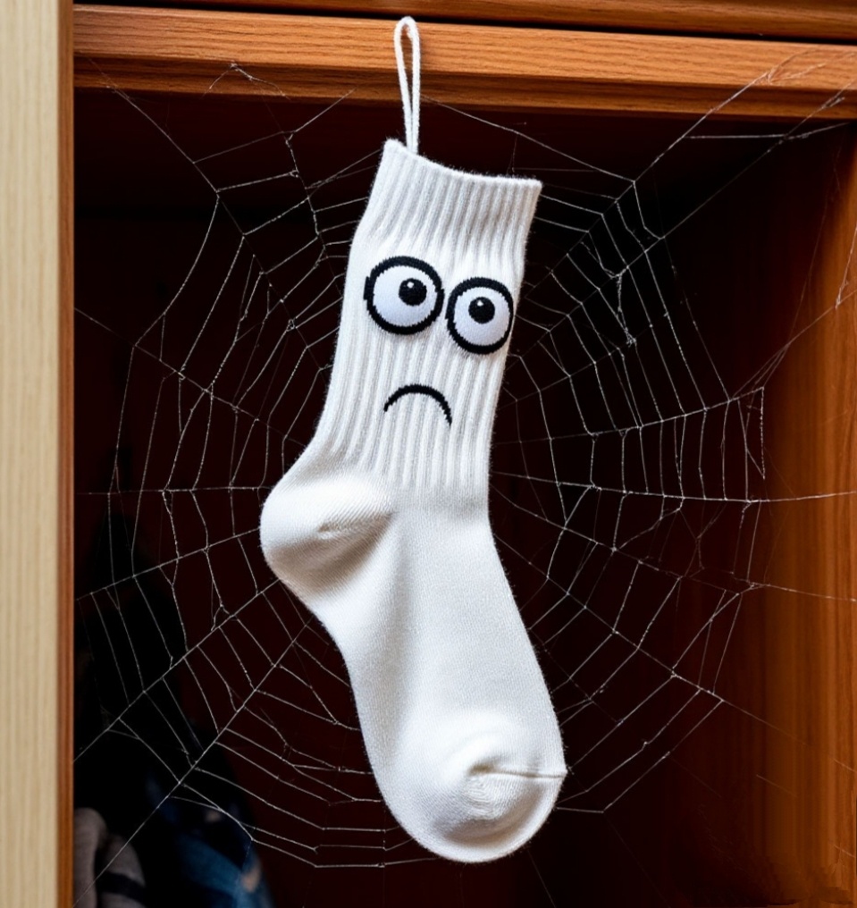 Вот он лежит. Один. Покинутый. Преданный. Носок, который когда-то был частью гармоничной пары, теперь — всего лишь жалкий кусок ткани с уныло свисающей резинкой. Как же так вышло? Ещё вчера он гордо обнимал левую ступню своего хозяина, грел её в зимние холода и стойко терпел летний пот. А его брат-близнец, такой же, но для правой ноги, был ему верным спутником. Вместе они пережили стирки, сушки, даже пару побегов из карманов джинсов перед самой загрузкой в машинку. Но однажды… случилось "Оно". Проклятая Стиральная Машина. Чёрная дыра ночного белья. Место, где носки исчезают без следа. Он очнулся на дне корзины для белья — холодный, мокрый и один. Его брата нигде не было. Возможно, тот теперь томится в параллельном измерении, где все потерянные носки становятся тряпками для пыли. Или, что ещё хуже, его подобрал какой-то безответственный человек и теперь носит с другим носком, создавая мерзкую непарную комбинацию. Хозяин, конечно, первое время искал пропажу. Перерыл все ящики, заглянул