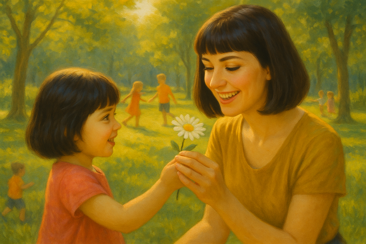 И ромашка поникла в детской руке. Не потому что её не взяли. А потому что сказку не услышали. В этом возрасте дети начинают формировать свою внутреннюю библиотеку образов. И если туда войдут только мультики, раздражение, «не мешай» и «отстань» —им потом оттуда будет сложно достать Свет. Но если там б