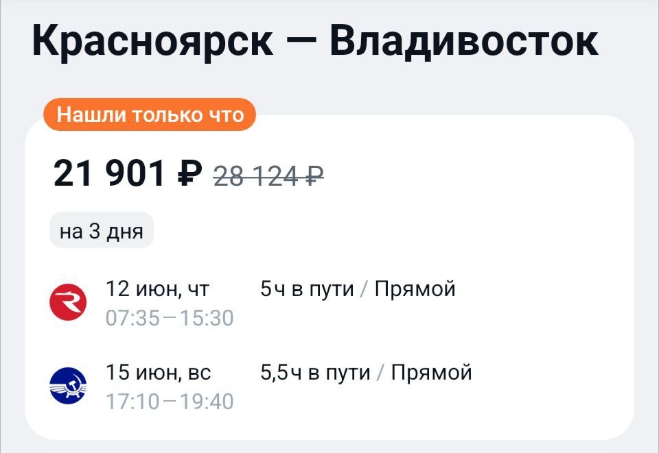 Во Владик на выходные. Сейчас такая цена - это ок.