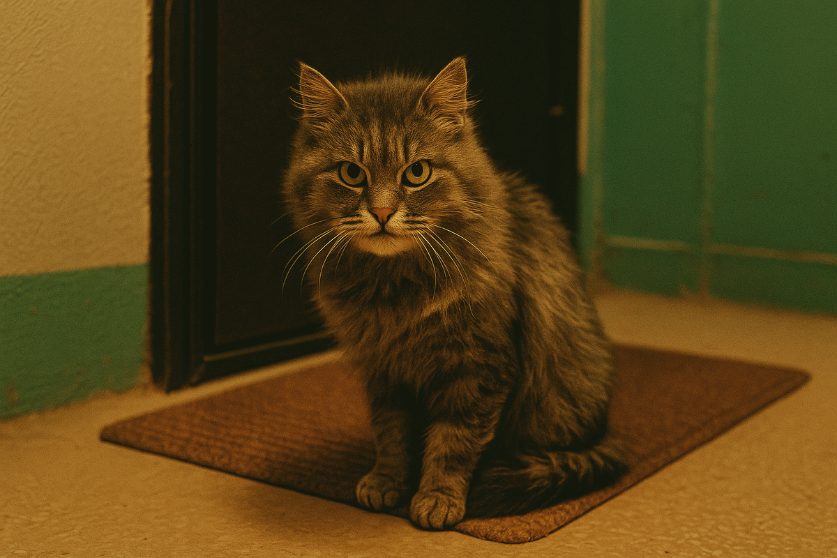 Я ушёл на кухню, достал пару кусочков колбасы из пакета. Вернулся — она сидела на том же месте. Осторожно положил еду рядом. Кошка понюхала, посмотрела на меня снова, встала и… прошла мимо колбасы вглубь квартиры.