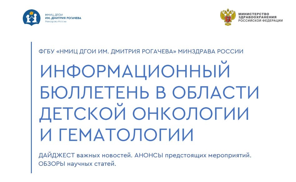Свежий номер №5/2025 ИНФОРМАЦИОННЫЙ БЮЛЛЕТЕНЬ В ОБЛАСТИ ДЕТСКОЙ ОНКОЛОГИИ И ГЕМАТОЛОГИИ ФГБУ «НМИЦ ДГОИ ИМ. ДМИТРИЯ РОГАЧЕВА» МИНЗДРАВА РОССИИ ДАЙДЖЕСТ важных новостей. АНОНСЫ предстоящих мероприятий. ОБЗОРЫ научных статей. Предыдущие номера можно посмотреть тут ➿➿➿➿➿➿➿➿ 🎗 #инфоОнкоДетки 🎗 #инфоОнкоДетки НСК 🎗 #МатеринскоеСердце 🎗 #Здравствуй!