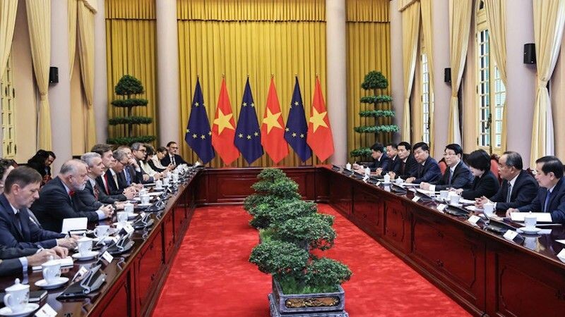Президент Лыонг Кыонг принял Посла ЕС Жюльена Герье, а также послов и поверенных в делах стран-членов ЕС во Вьетнаме.На приеме Президент Лыонг Кыонг приветствовал сотрудничество ЕС с Вьетнамом в областях зеленой трансформации, цифровой трансформации, устойчивого развития, науки и технологий, возобновляемой энергии и инфраструктуры, предложил обеим сторонам тесно координировать действия для более активного и эффективного развития этих отношений на основе равноправного и взаимовыгодного сотрудничества.