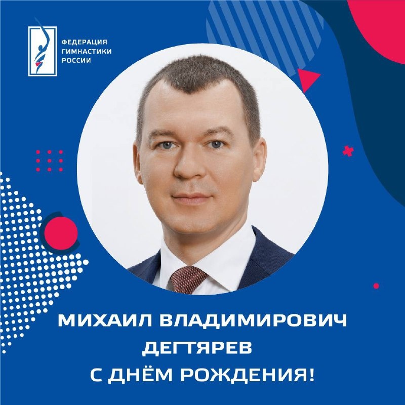 Поздравляем Михаила Владимировича Дегтярёва! Сегодня день рождения отмечает Министр спорта РФ, президент Олимпийского комитета России, доктор юридических наук. Труд, энергия и неравнодушное отношение к спорту Михаила Владимировича являются мощным импульсом для развития всей спортивной отрасли в стране. Его поддержка создаёт новые возможности для спортсменов, тренеров и федераций, и гимнастика здесь не исключение. Федерация гимнастики России высоко ценит открытость к диалогу, внимание к деталям и последовательную позицию в продвижении физической культуры и здорового образа жизни. Желаем крепкого здоровья, сил и вдохновения для реализации всех замыслов, успехов в государственной деятельности и новых достижений на благо российского спорта!
