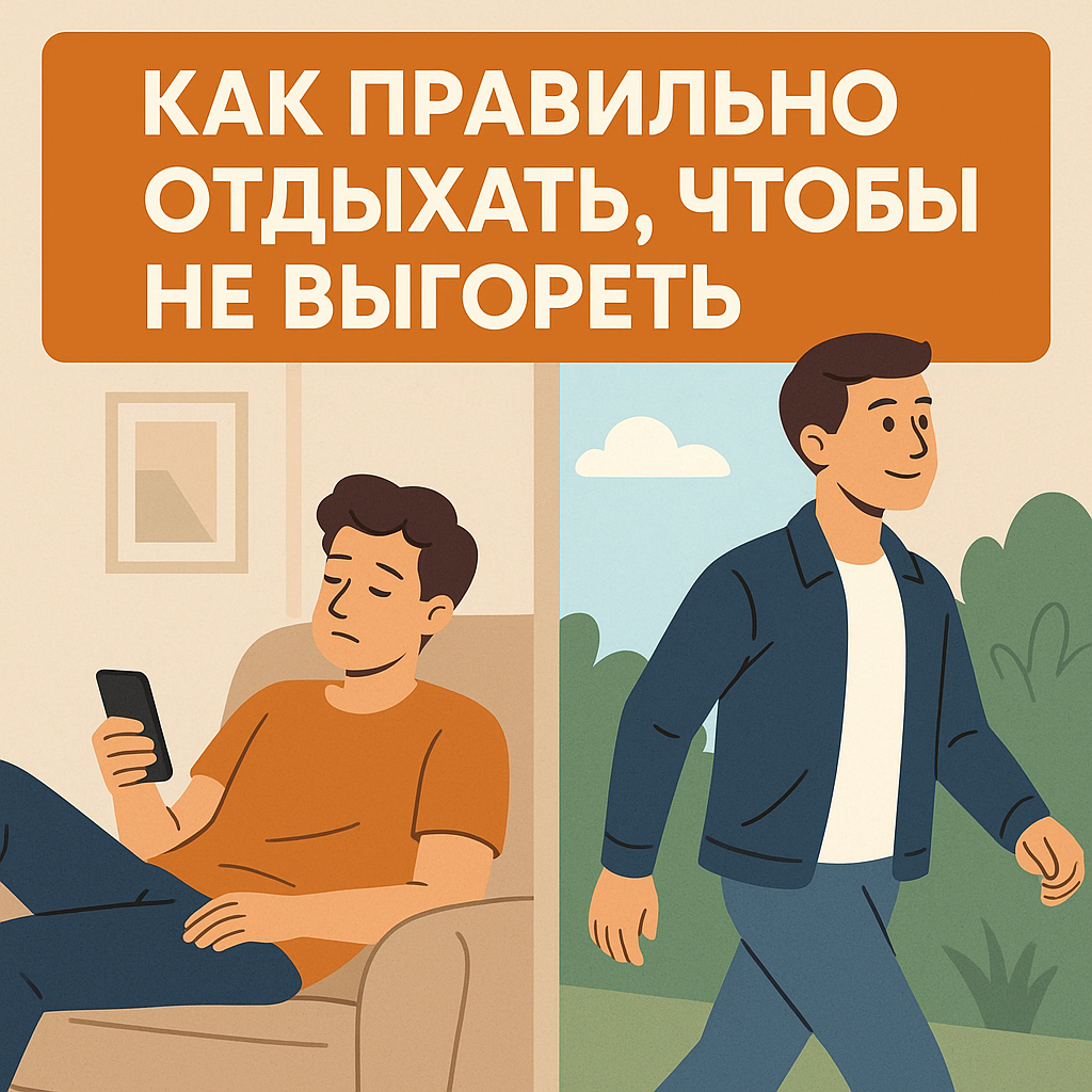 Ты замечал, что даже когда отдыхаешь, чувствуешь усталость? Почему так происходит? Потому что мы часто отдыхаем «неправильно»: лежим на диване с телефоном, листаем ленту, и от этого становится только хуже. Давай разберёмся, как отдыхать так, чтобы восстановить силы и не выгореть.