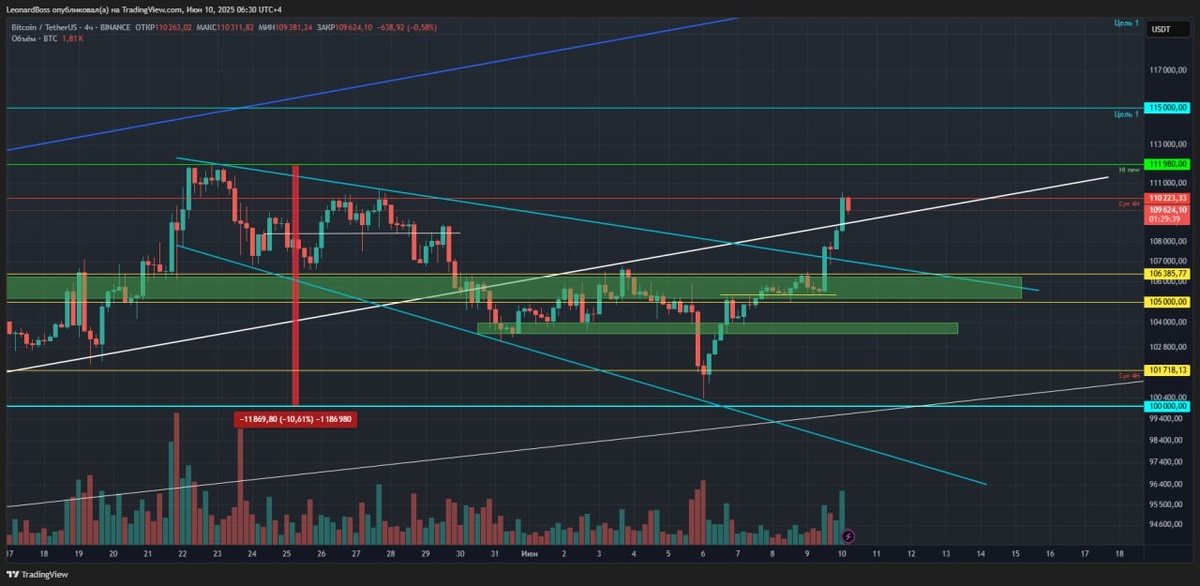 В ответ на пост #BTC 🕯Локально🕯 ⚠️Отличное ускорение показал BTC и уехал вверх без всяких тестов. Как видите, мои мысли о красивой манипуляции в идеальном сопровождении!! ⚠️Смотрите коллеги, цена пробила все локальные блоки, одну трендовую, вторую трендовую, которая более важная (белая) и да, уперлась в локальное сопротивление, от которого и уехали на коррекцию!! ⚠️Очень многие ждут еще одну коррекцию в сторону 92К. Я же напротив, жду продолжения роста, как и говорил прежде, в сторону уровня 117К, ну ок, с возможным касанием 120К. Для понимания, друзья, чтобы туда дойти, это все лишь такой же прыжок, который цена сделала в течении последних 4 дней!! P.s. цена всегда идет в ту сторону, куда ей легче. Это, как порыв ветра несёт листок бумаги без особых усилий. По многим обстоятельствам именно этот процесс мы и наблюдаем. Структура ускорения идеальна для продолжения роста. Ну давайте так, даже чисто по ТА, график настроен дальше идти вверх!! Для полного понимания картины, чекаем тр