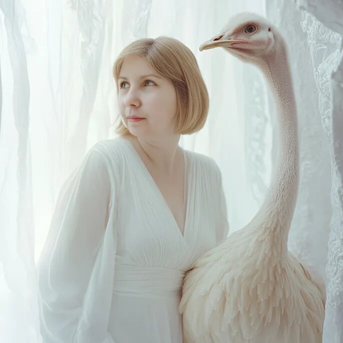 Я улыбнулась. Ну кто сейчас всерьёз держит гусей? Спойлер: хозяйка. Открывает женщина в фартуке с ромашками.