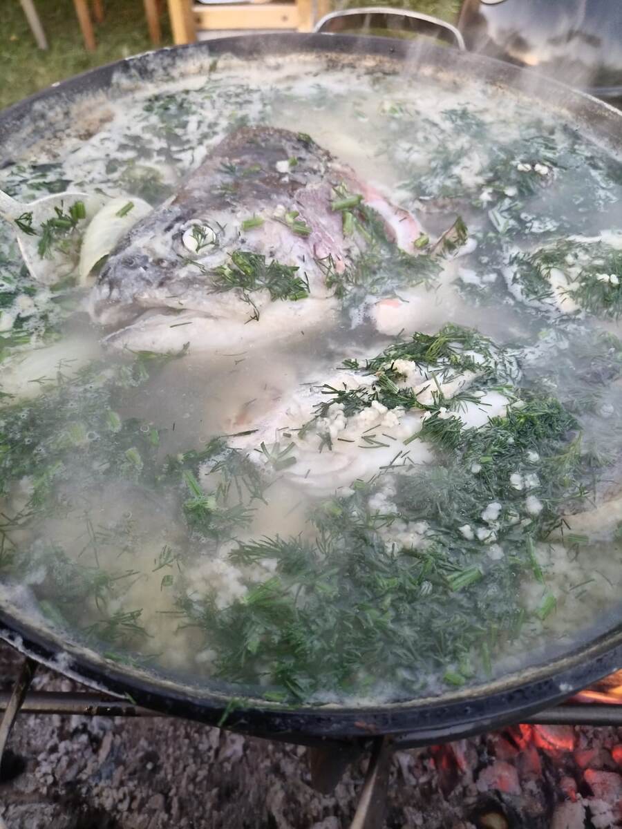 Самая вкусная, уха получается на костре в казане, с дымком.