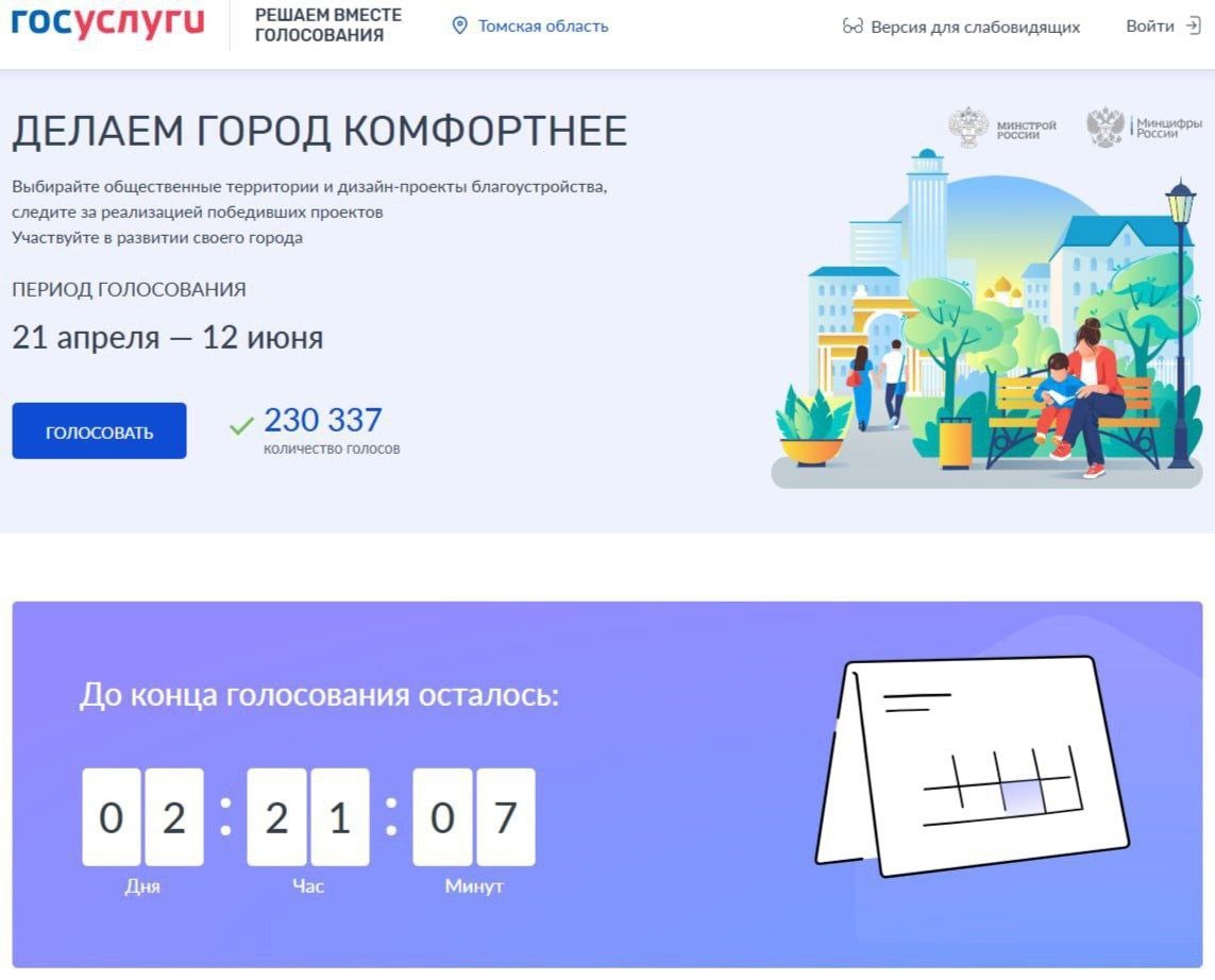 Более 230 тысяч жителей Томской области выбрали проекты благоустройства