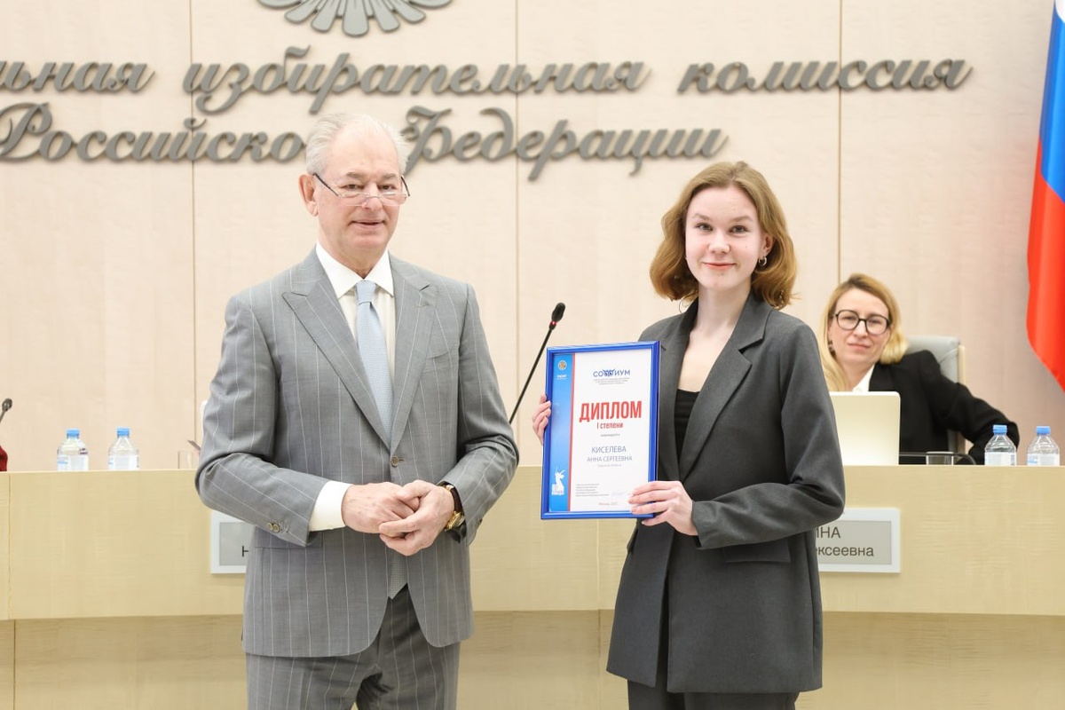 🦉 Дважды победитель «Софиума» Анна Киселева, 11-й класс Регион: Тверская область Образовательная организация: МОБУ «Лицей № 15» Наставник: Иванова Елена Николаевна, учитель истории и обществознания Фото: РЦОИТ при ЦИК России #простоовыборах #софиум #золотойзапас