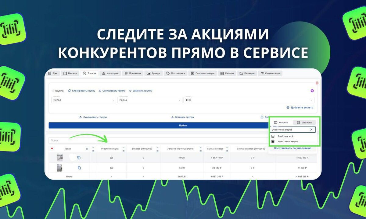 🔥 Обновление во Внешней аналитике — следите за акциями конкурентов! Мы расширили возможности внешней аналитики — теперь ещё проще анализировать рынок и конкурентов. Что нового? 🔹Колонка «Участие в акции» Появилась в табах «Товары» и «Похожие товары» — теперь вы сразу видите, какие товары участвуют в акциях маркетплейса. 🔹 Фильтр и сортировка по акциям Доступны во всех табах внешней аналитики (❗кроме «Сезонности» и «Подбора ниши»): • Фильтруйте товары по признаку участия в акциях • Сортируйте списки, чтобы быстрее находить нужные позиции Это удобно при анализе конкурентов: теперь вы сразу видите, кто держится в топе благодаря скидкам, а кто продаёт «в чистую». Это обновление позволяет: ✔️ Быстро находить товары вне акций — для сравнения «по-честному» ✔️ Реагировать на изменения в ценовой активности конкурентов ✔️ Точнее планировать свои кампании и ценовые стратегии 📈 Теперь вы точно знаете, кто продаёт за счёт скидок, а кто — за счёт сильного продукта. MP Manager — автоматиз