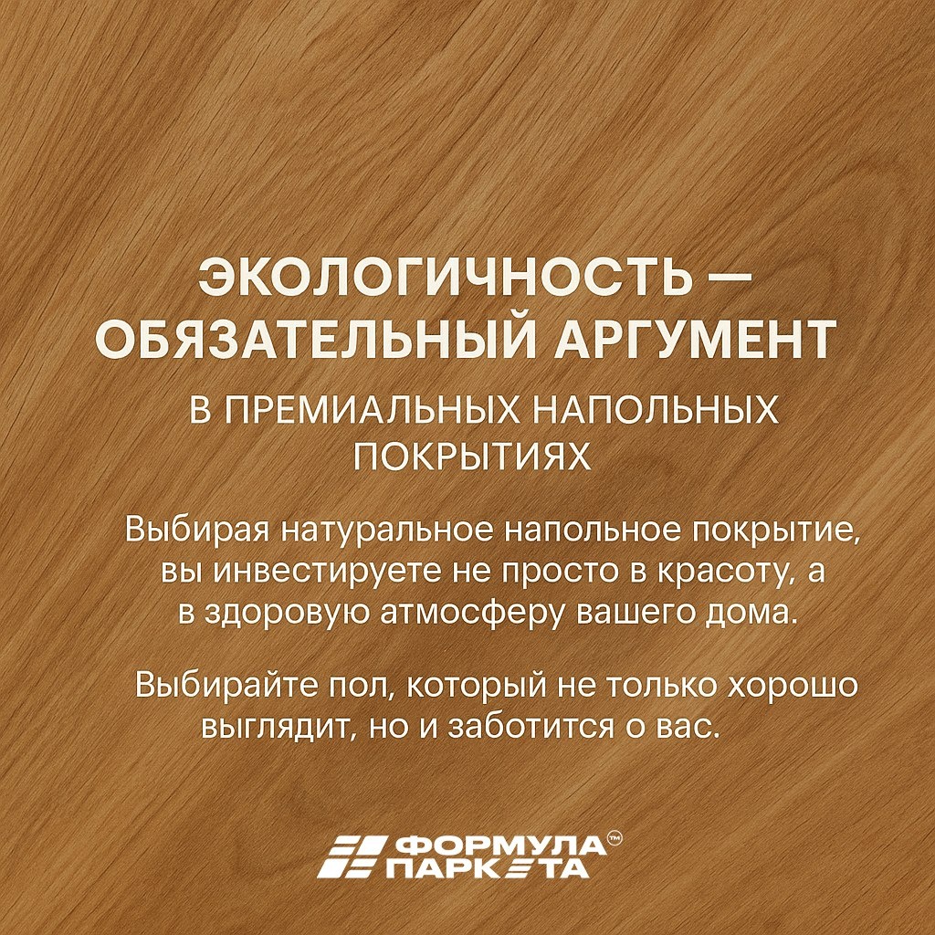 Экологичность — обязательный аргумент в премиальных напольных покрытиях 🪵 Когда речь идёт о премиальных интерьерах, важна не только эстетика, но и внутренняя ценность материалов. Один из ключевых критериев — экологичность. Выбирая натуральное, экологически чистое напольное покрытие, вы инвестируете не просто в красоту, а в здоровую атмосферу вашего дома. Безопасные лаки и масла, отсутствие вредных эмиссий, природное сырьё — всё это отличает по-настоящему премиальный продукт. 🌱 Эко-ориентированное производство сегодня — это не мода, а показатель осознанного подхода к качеству жизни. Поэтому экологичность — не дополнительный плюс, а обязательная норма в сегменте premium. Выбирайте пол, который не только хорошо выглядит, но и заботится о вас.