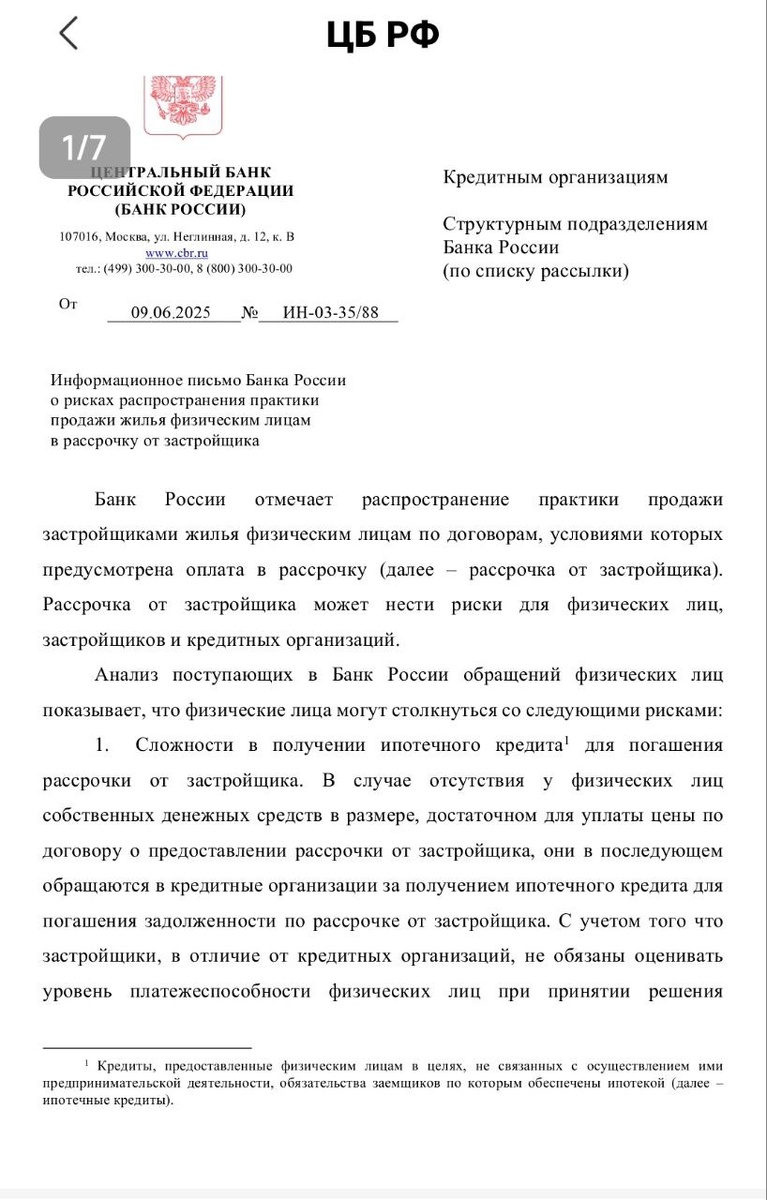 Судя по всему жопушка грядет неслабая, раз ЦБ такие "рекомендации" по банкам рассылать стал. Рассрочка хороший инструмент в очень ограниченном количестве, а в нынешних масштабах - это смерти подобно. Не всего рынка недвижимости, но отдельных строительных позиций - вполне возможно, где этими рассрочками застройщики сами себя успокоили типа выполнив план продаж.