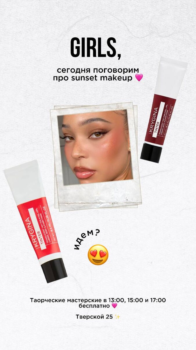 Sunset makeup – это трендовый стиль макияжа, вдохновленный цветами и переходами, которые можно увидеть на закате солнца 🟠✨ Сегодня будем учиться создавать выразительный трендовый румянец 🩷 • Как подобрать свой идеальный оттенок румян? • Как создать эффект градиента на щечках? • Как добиться лифтинг-эффекта, используя только 1 продукт? Все это разбираем на бесплатных Творческих Мастерских на Тверском бульваре сегодня ⭐️⚙️ Участницам предоставляем все необходимое для макияжа - кисти, косметику и расходники. С вас – хорошее настроение, а мы обеспечим час крутейшей бьюти-атмосферы 🫦 До встречи! 😎🌟