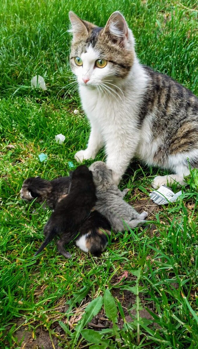 Представьте себе, чистое поле, рядом частный сектор, и вдруг БАХ ... и посреди поля сидит кошка с новорожденными котятами. Разве это не чудо? Просто из ниоткуда, целое семейство. Но нет, чудес не бывает. Кошка с малышами появилась в поле благодаря не чуду, а "благодаря" предательству и жестокости человека. О чем рассказала свидетельница в чате данного частного сектора. Она видела, как кошку с котятами там оставила женщина. Подойти и вразумить ее она не смогла, проезжала мимо. Кошечка чистенькая, не истощенная. УМНАЯ!!! Как только ей предложили коробку, она сразу перенесла в нее котят и легла рядом Как же без риторических вопросов? "КАК?! ЗАЧЕМ?! ЗА ЧТО и КАК ЖИВЕТСЯ СПОКОЙНО?!" В таких случаях особо "сострадательные" оставляют хотя бы хоть какой-то корм, обычно самый дешевый, но тут даже дешевого не было. Ну даже если предположить, что кошка не этой женщины, допустим родила она в ее дворе, зачем в поле то вывозить? Совсем в голове мыслей добрых нет что ли? Почему бы к волонтерам не