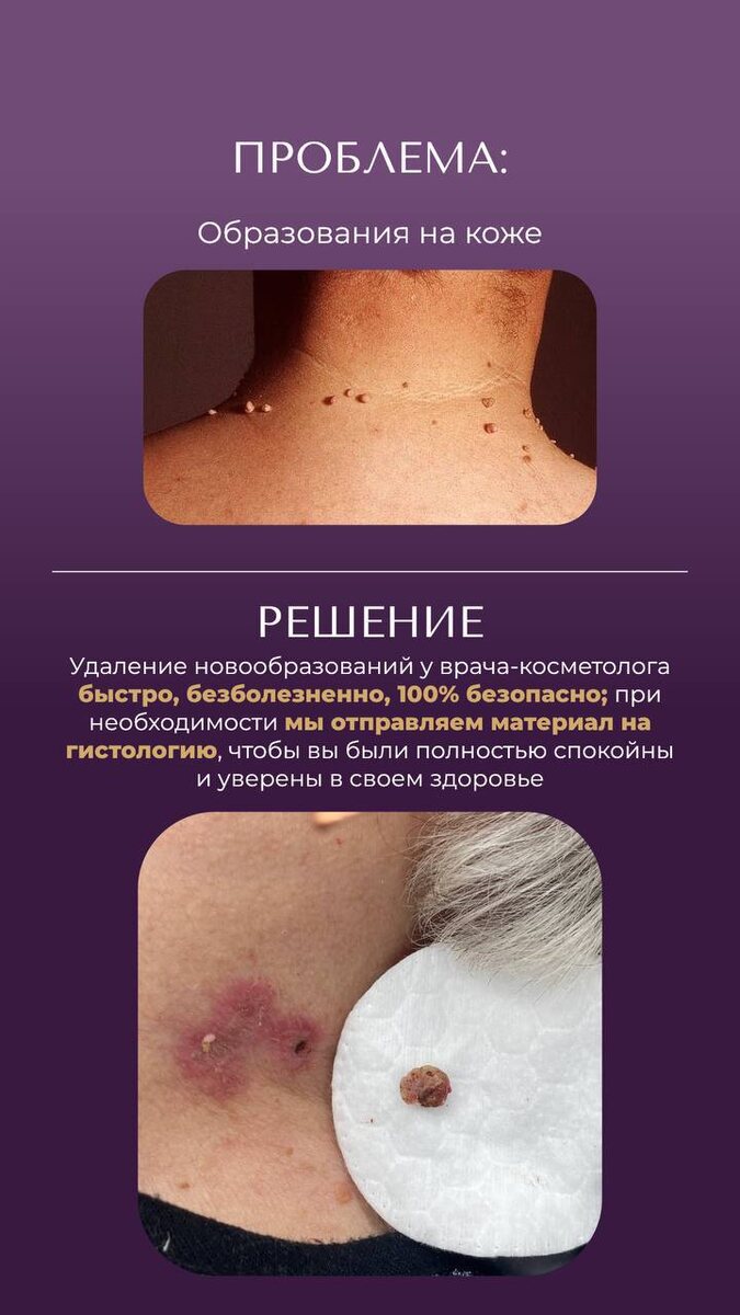 Новообразования на коже — это не то, что можно “оставить на потом”. Родинки, папилломы, кератомы, жировики — все эти образования могут выглядеть безобидно, но со временем меняться, травмироваться и даже становиться опасными. Важно не просто удалить, а сделать это грамотно и безопасно, с предварительной консультацией специалиста и под контролем дерматокосметолога. В клинике “БОГИНЯ” мы удаляем новообразования современными методами — быстро, аккуратно и с минимальной травматизацией кожи. После удаления вы получите рекомендации по уходу и, при необходимости, направление на гистологию. Не откладывайте — здоровье кожи начинается с внимательности. Запишитесь на приём к нашим врачам — мы подскажем, что действительно требует удаления, а что можно наблюдать.