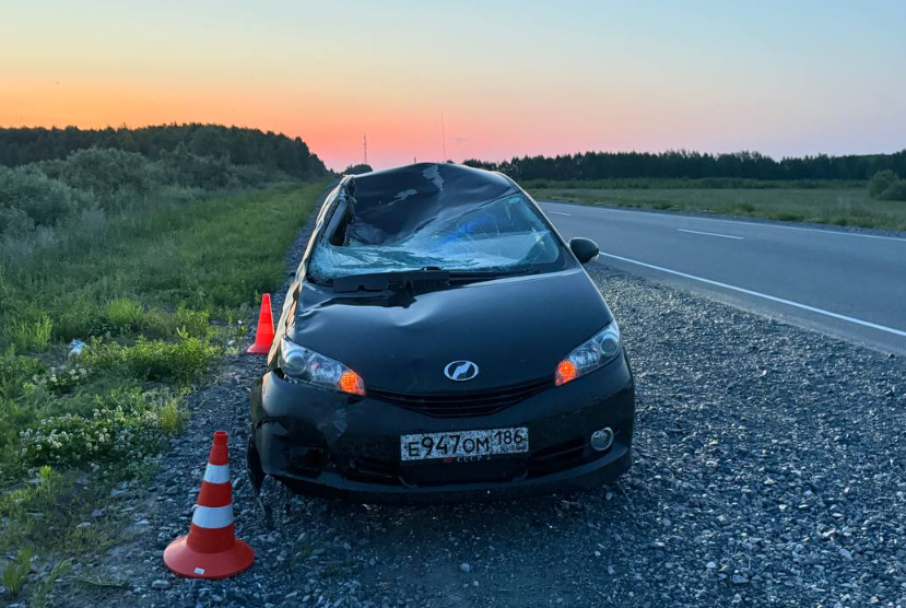 На 167 километре трассы Тюмень-Ханты-Мансийск автомобиль «Тойота», в котором ехала семья из Ноябрьска, столкнулся с лосем. Животное погибло, сообщили в Госавтоинспекции по Тюменской области.