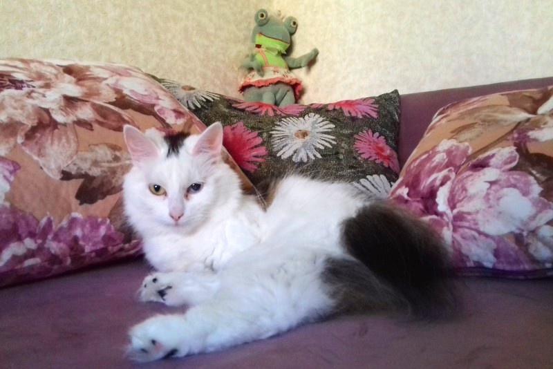Давненько я не поминала имя Матильды всуе. Сейчас помяну. Хотя говорить, собственно, и нечего! Ведёт себя прилично. Не шалит. По углам лужи не делает… Обои новые всё норовит подрать. Но это объяснимо. Пятничного кота очень ждёт! Я-то её так понимаю, так понимаю…Вскружил девке голову и смылся…кот такой… Тут в страданиях нечеловеческих не то, что обои, линолеум на клочки подрать хочется, жаль, что он скользкий, не поддается. Публикую фотографию Матильды в стадии ожидания. Вдруг Пятничный кот увидит, вспомнит наше кефирное заведение и заглянет. Мы с Матильдой его всегда ждём.. Да, я ещё стих написала. Про любовь. Вообще и на самом деле, я стихов не люблю. Но иногда, вдруг такой Пегас нападёт, что только успевай записывать, что он мне в сознание проржёт. Пегасы ведь не говорят, насколько я понимаю? Они ведь ржут? Ну не важно. Посвящение Матильде. Стих. В подушках нагло развалясь, Меня нисколько не боясь, Матильда дрыхнет. У неё Нахальства больше моего! Я буду тихо ожидать, когда она изволи