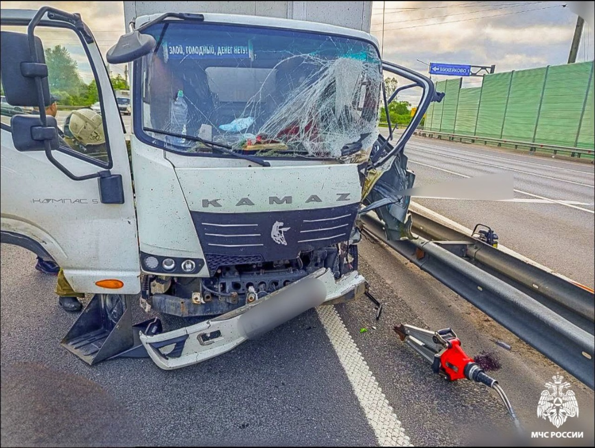 📌 На 335-м километре автодороги М-1 недалеко от города Ярцево произошло столкновение грузового и легкового автомобиля