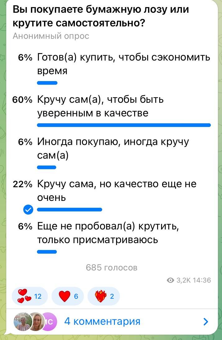 Вижу, вы тут почти все крутите лозу самостоятельно 😏 Но давайте честно — вы довольны её качеством? Пройдите опрос ниже 👇 И не забудьте написать в комментах, что именно не даёт покоя?