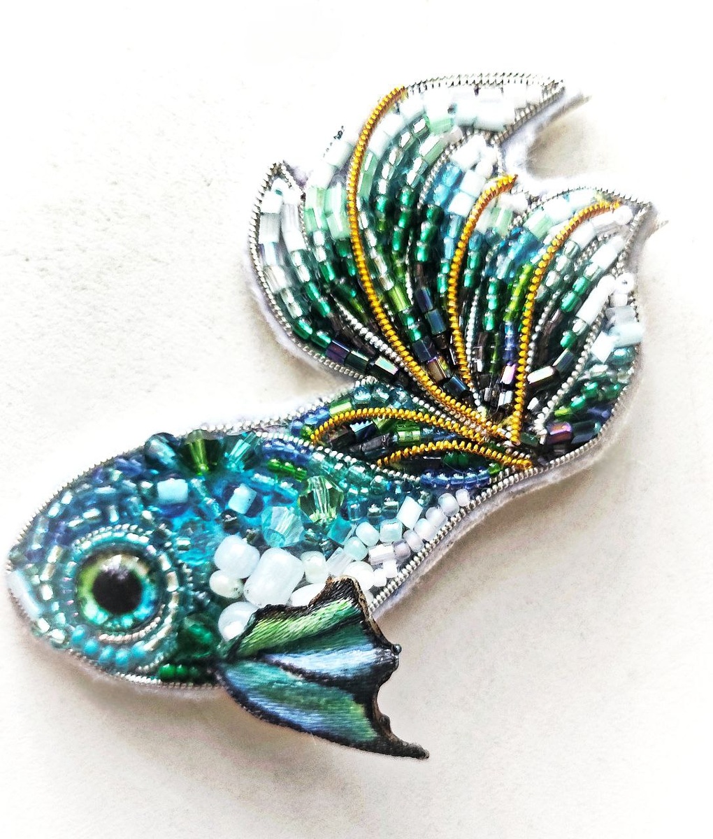 Шикарная брошь рыбка вуалехвост уже радует свою хозяйку. А я могу сделать аналогичную в любой цветовой гамме по твоему желанию 😉