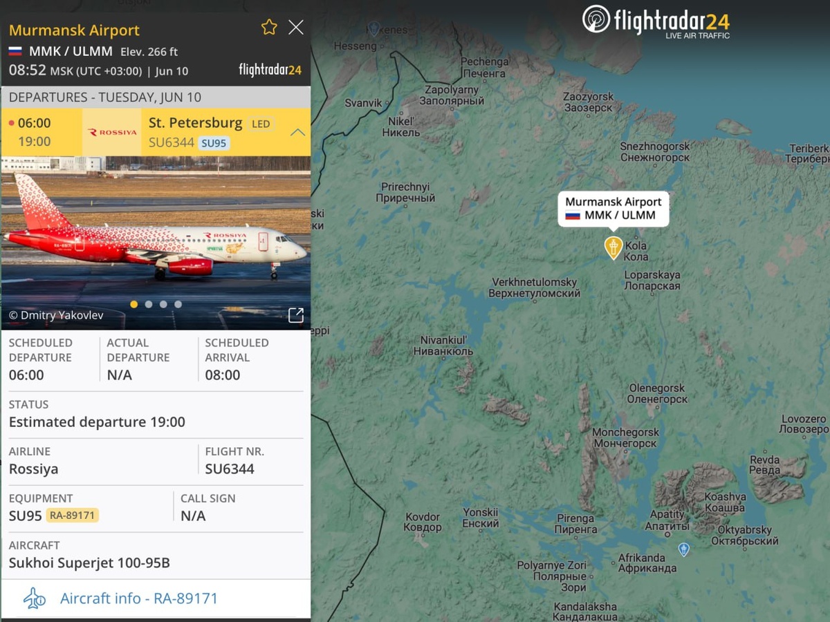 Из-за вводимого ночью в аэропорту Пулково режима «Ковёр», время вылета рейса авиакомпании «Россия» из Мурманска в Петербург перенесено с