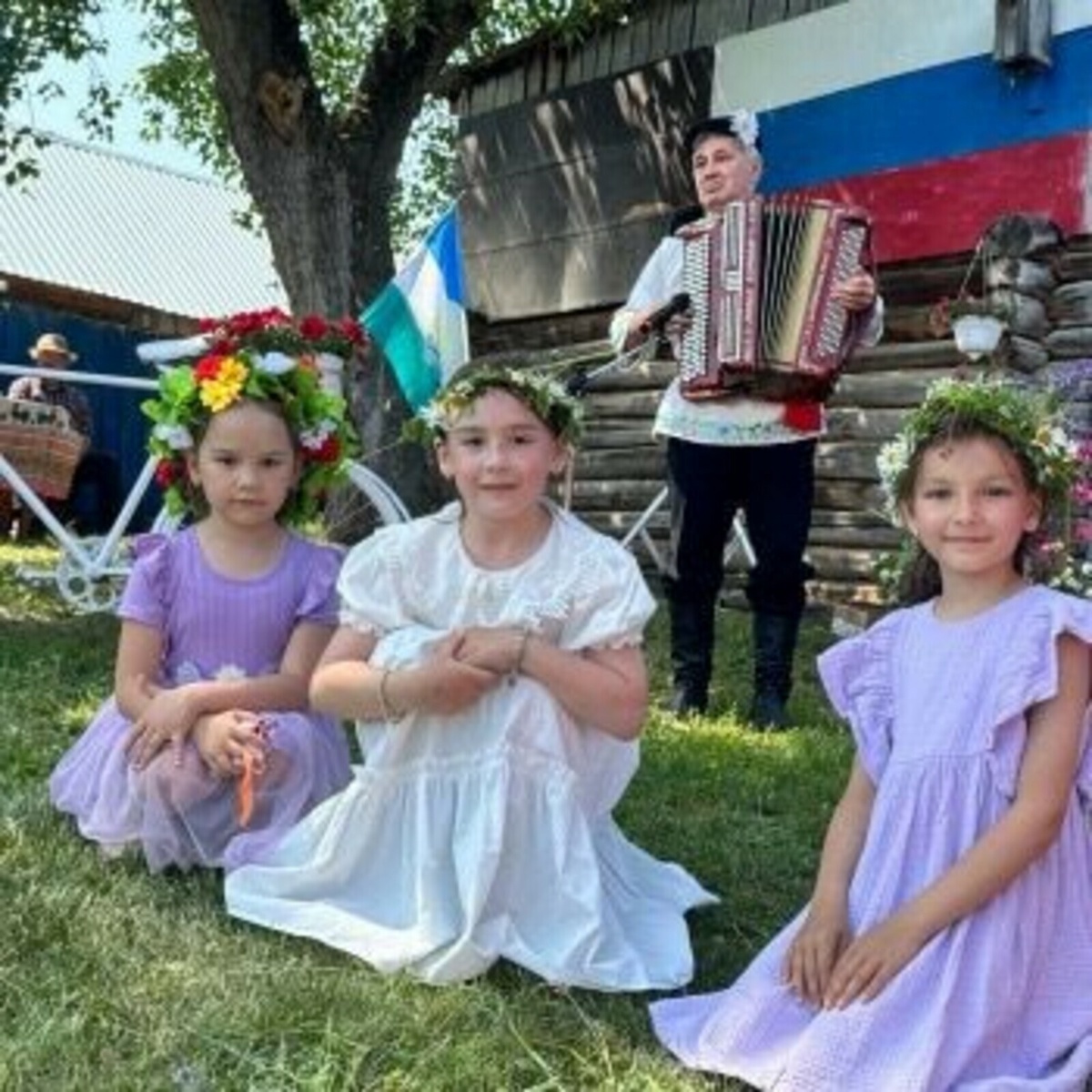 Взрослые вместе с детьми играли в старинные игры «Ручеек», «Золотые ворота», «Селезень утку догонял». На территории Серафимовского сельсовета Туймазинского района прошел фольклорный праздник «Зеленая Троица». Ведущая познакомила гостей с традициями Троицы, а народный коллектив вокальный ансамбль «Русская песня» помог всем присутствующим окунуться в невероятную атмосферу праздничной старины. По старинному обычаю присутствующие завивали деревце, завязывая его веточки в кольца, украшая лентами, платочками, загадывая при этом свои сокровенные желания. Считалось, что таким образом можно крепко-накрепко привязать свои мечты, и они обязательно сбудутся. Необычно прошел обряд «кумления». «Покумиться» – значит породниться душой с близким человеком. В старину в этот день девушки разбивались на пары, обнимались и обменивались подарками через завитый на дереве из веток венок («завивание березки»). Вспомнив молодость, взрослые вместе с детьми играли в старинные игры «Ручеек», «Золотые ворота», «Сел