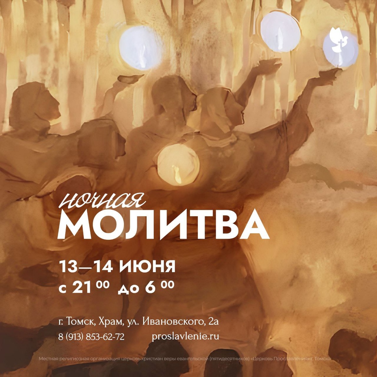 Дорогие братья и сестры! ✨Приглашаем вас на ночную молитву на нашем Храме по адресу ул.Ивановского,2а🙏🏼 ➡️Начало молитвы - 13 июня в 21:00 ➡️Окончание молитвы - 14 июня в 6:00 Приглашайте своих друзей и знакомых🙌🏼