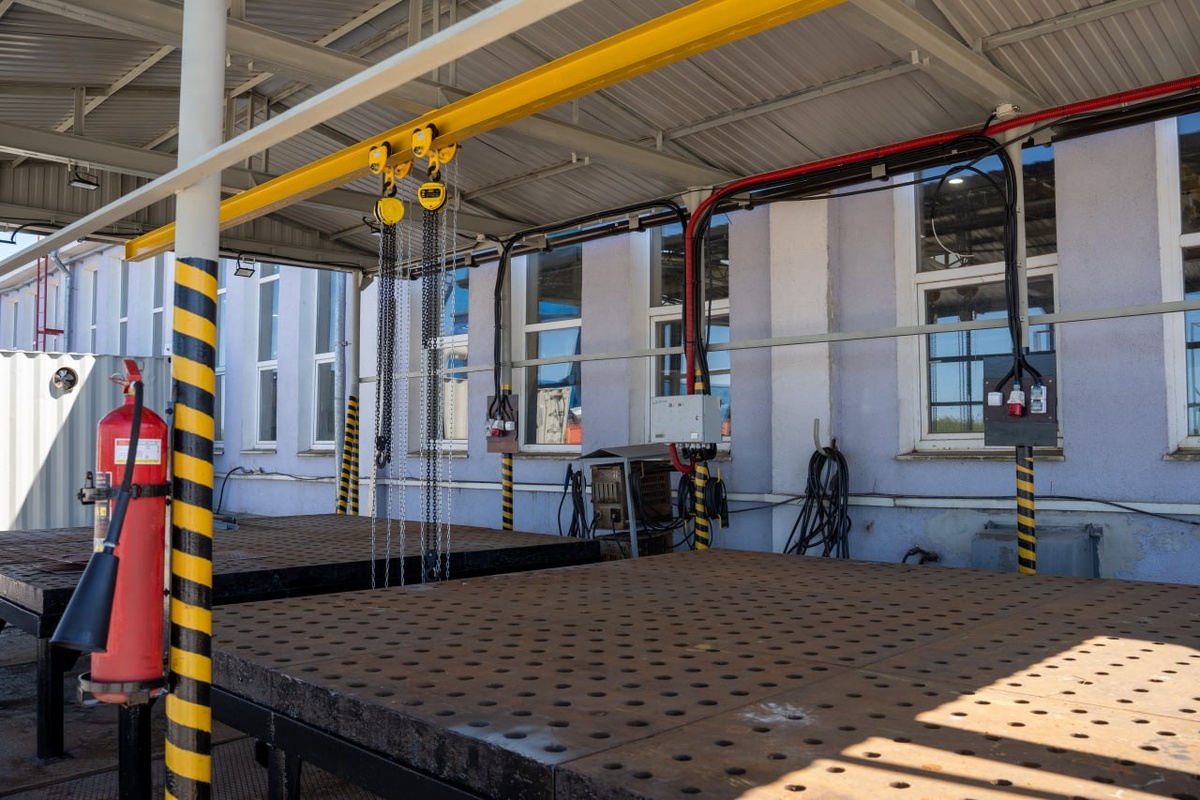 Сотрудники завода ОСК «Янтарь» завершили строительство сборочно-сварочных плит рядом с монтажно-сдаточным цехом. Это нововведение существенно упростит, ускорит и повысит безопасность процессов заготовки и обработки крупных деталей. Напомним, после реконструкции набережной №5 работники монтажно-сдаточного цеха по инициативе начальника корпусодостроечного участка Никиты Касьян решили восстановить сборочно-сварочные плиты. «Спроектировали чертежи, сварили каркас, уложили чугунные плиты. Затем смонтировали навес и съёмную крышу, на которой установили кран-балку для погрузки деталей и оборудования массой до 1 тонны. После ввода в эксплуатацию данной площадки цех может производить рихтовку и изготовление деталей различной конфигурации, не затрачивая время на эксплуатацию площадок в других цехах — пояснил Никита Касьян. — Все было сделано силами нашего цеха из деловых отходов металла, а также из готового металлопроката». Для работы с электроинструментом и электрооборудованием плиты подключены