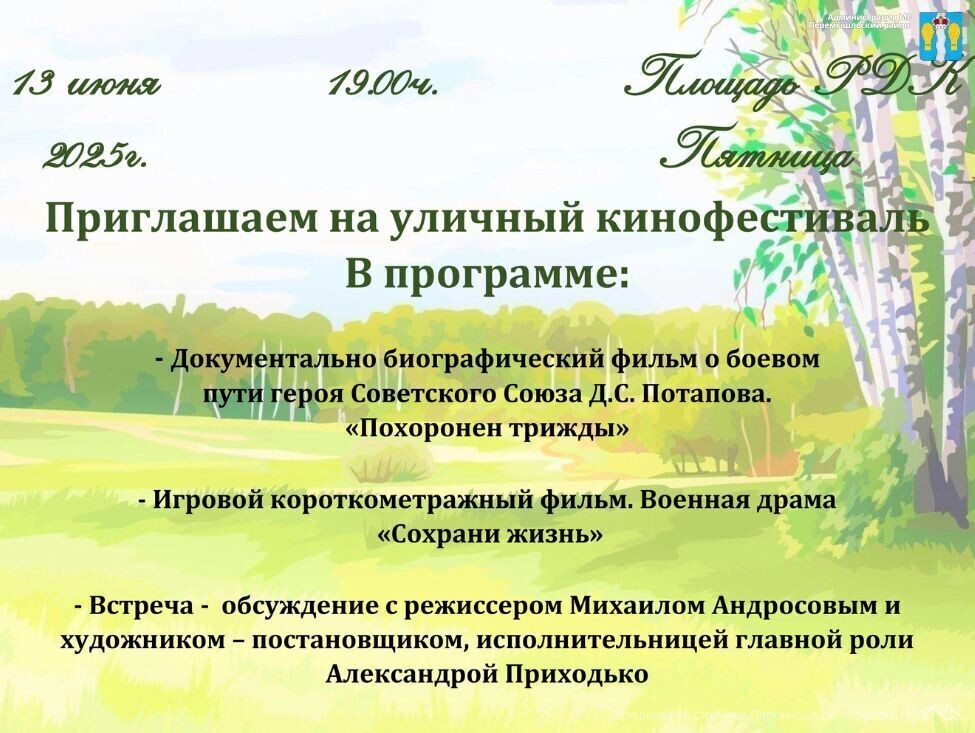 π¬ ΠΡΠΈΠ³Π»Π°ΡΠ°Π΅ΠΌ Π½Π° ΡΠ»ΠΈΡΠ½ΡΠΉ ΠΊΠΈΠ½ΠΎΡΠ΅ΡΡΠΈΠ²Π°Π»Ρ, ΠΊΠΎΡΠΎΡΡΠΉ ΠΏΡΠΎΠΉΠ΄Π΅Ρ 13 ΠΈΡΠ½Ρ Π² ΠΠ΅ΡΠ΅ΠΌΡΡΠ»Π΅ Π½Π° ΠΠ»ΠΎΡΠ°Π΄ΠΈ Π Π°ΠΉΠΎΠ½Π½ΠΎΠ³ΠΎ ΠΠΎΠΌΠ° ΠΊΡΠ»ΡΡΡΡΡ. #ΠΠΈΠ½ΠΎΡΠ΅ΡΡΠΈΠ²Π°Π»Ρ