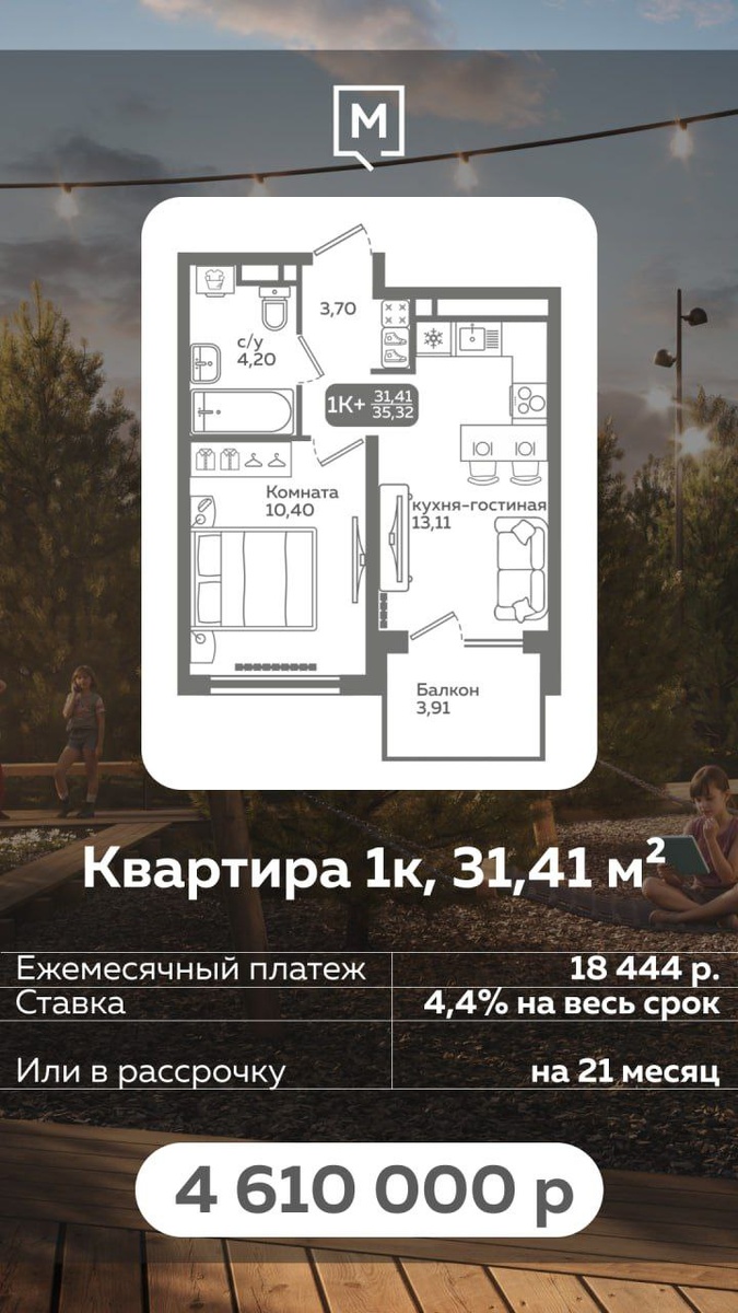 #ТЮМЕНЬ В жаркий солнечный день, жильцы проекта "Меридиан Слобода" могут укрыться от солнечных лучей под кронами сосен, в собственном ХВОЙНОМ СКВЕРЕ в закрытом дворе проекта🌲. Насладится чистым и свежим воздухом, уютно устроившись в гамаке, или покормить белочек, не выходя из двора🐿 Один шаг до мечты🏗 Для Вас 1 комнатная квартира 31 кв.м. Удобная функциональная планировка с широким балконом и отличным видом🪟 В семейную ипотеку от 2,5% всего за 18 444 р. Возможна рассрочка до 21 месяца.💸 📱89923566884 Алсу Рафисовна