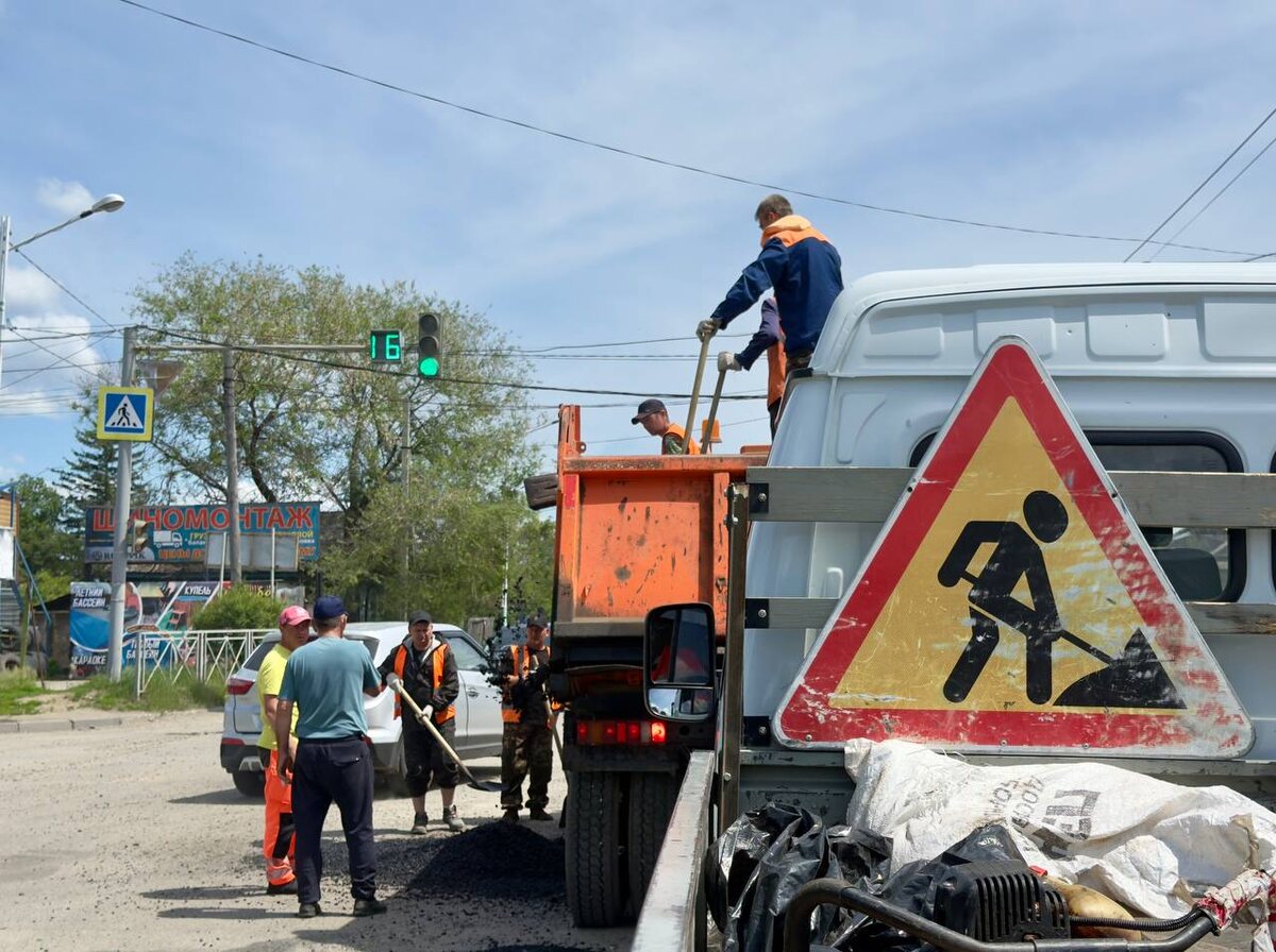 Предварительный ямочный ремонт обеспечила бригада из 6 рабочих с использованием 1 КамАЗа. Для устранения ям и выбоин использовано более 10 тонн горячего асфальта.
