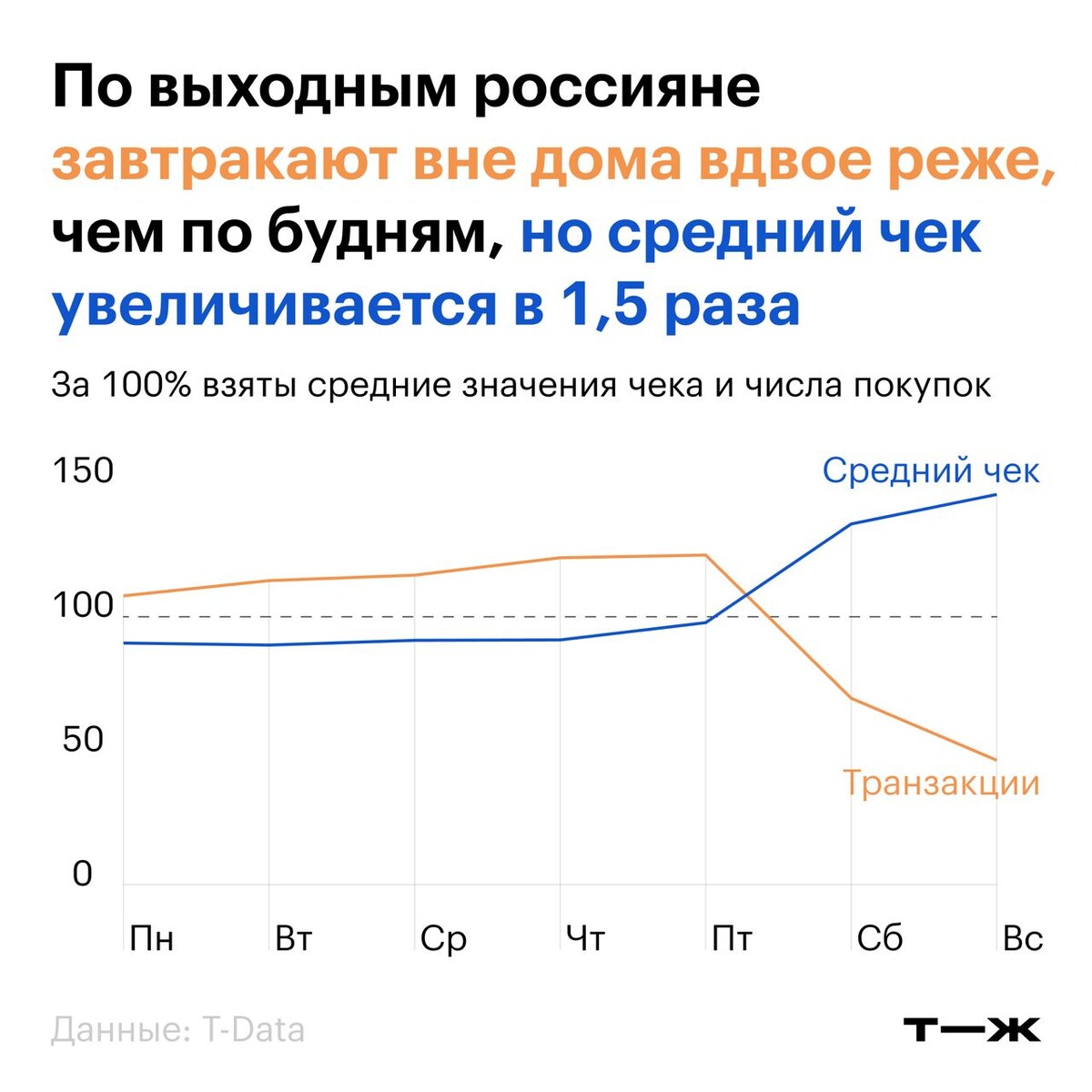 🟡Больше всего на завтрак любят есть рисовую и пшенную каши. 🟡32% любят на завтрак выпить кофе. Еще 26% пьют чай, 18% — соки. 🟡В Москве и Санкт-Петербурге в среднем завтракают в 9:51 и в 9:56. В остальных регионах чуть позже — в 10:07. 🟡Средний чек за завтрак в общепите составляет 285 ₽. В фастфуде он составляет 400,4 ₽, а в вендинговых аппаратах — 113,5 ₽. Подробно изучили, как, чем и по какой цене завтракают россияне: https://t-j.ru/tg/breakfast-time-stat/
