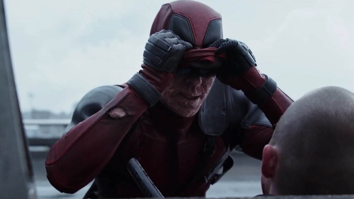 Или вот сцена, когда Уэйд следит за Ванессой, была шире. В ней Уэйд попал под автобус и проснулся в мешке для трупов.