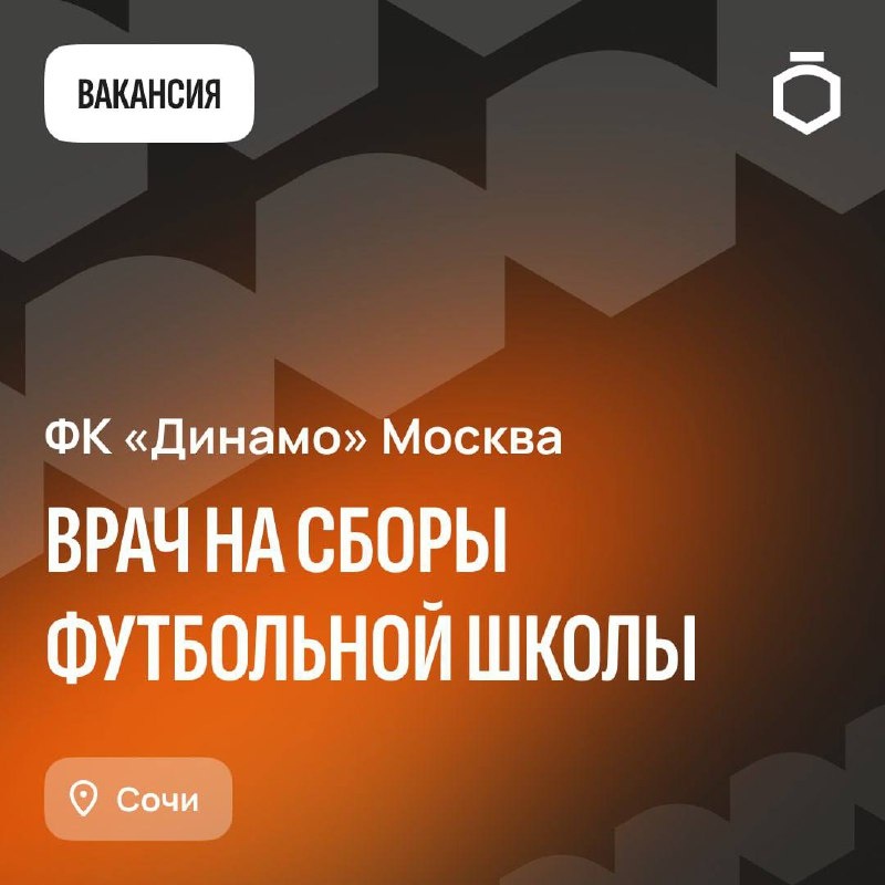 Футбольный клуб «Динамо» Москва в поиске врача на сборы футбольной школы Обязанности: — ежедневный осмотр детей; — включенность 24/7 (в случае экстренных ситуаций); — нахождение на тренировочных полях во время тренировок; — нахождение в своем номере (кабинете) во время дня; — оказание медицинской помощи спортсменам на тренировках и турнирах; — пополнение аптечки медикаментами. Сборы пройдут в две смены: — с 28 июня по 5 июля; — с 7 июля по 14 июля. 📎 Подробнее о вакансии 🟠 Подписаться на Факультет #футбол #динамо
