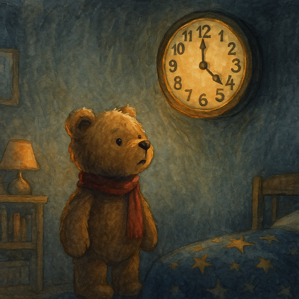 Когда звезда появилась в небе и свет лег на подушку, Топа, как всегда, проснулся. Он потянулся, поправил свой красный шарф и сел, свесив лапки с подушки. Его плюшевая шерсть чуть скрипнула — от времени. Он был не новым. Но он был настоящим.