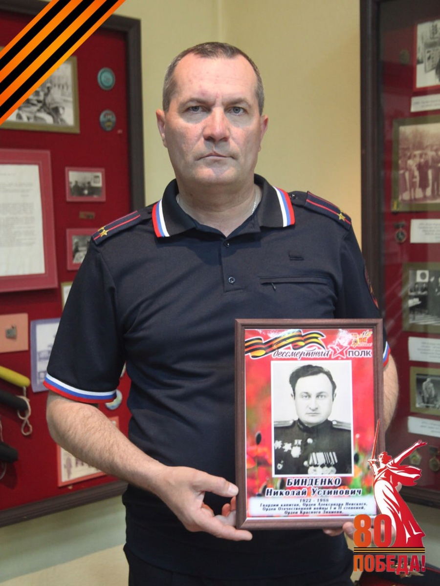 🎗Подполковник полиции, заместитель командира ОСБ ДПС ГИБДД ГУ МВД России по Кемеровской области – Кузбассу Бинденко Максим Олегович, кавалер Ордена Мужества, Ордена «Доблесть Кузбасса» рассказывает про своего деда, участника Великой Отечественной войны. 🇷🇺Бинденко Николай Устинович, 1922 года рождения, был призван на фронт в самом начале Великой Отечественной войны, в 1941 году. Воевал на Западном, Донском, 3 Украинском, Юго-Западном фронтах. Член ВКП(б) с 1943 года. Должность – командир стрелкового батальона 55 Гвардейского полка Криворожской дивизии. Во время военных действий был трижды ранен: 22.12.1941 г., 19.07.1942 г., 17.08.1943 г. Закончил войну в Австрии в звании гвардии капитана, продолжил службу в Советской Армии. Ушел в отставку в звании подполковника. 🎖Имеет боевые награды: 1943 год – Орден Александра Невского июнь 1944 года – Орден Отечественной войны II степени сентябрь 1944 года – Орден Красного Знамени апрель 1945 года – орден Отечественной войны I степени май 19