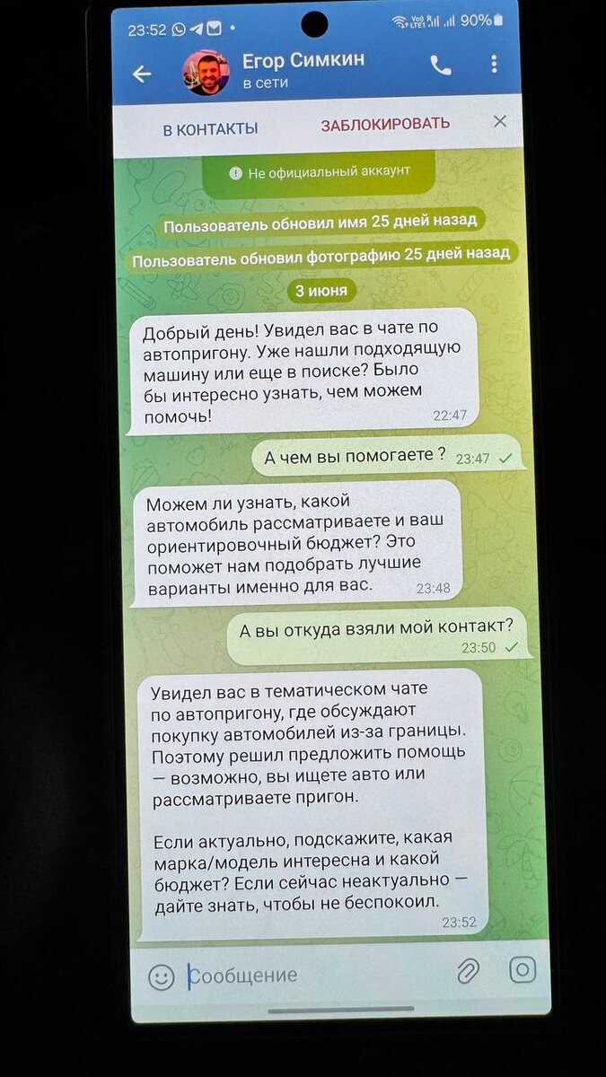 ‼️ОСТОРОЖНО МОШЕННИКИ Друзья, все чаще случаются случаи, когда фейковые аккаунты выдают себя за нас и пишут нашим клиентам. Будьте бдительны и проверяйте, от кого вам пришло сообщение. Наши менеджеры общаются с клиентами только с аккаунта нашего бота — @GetAuto_manager_bot